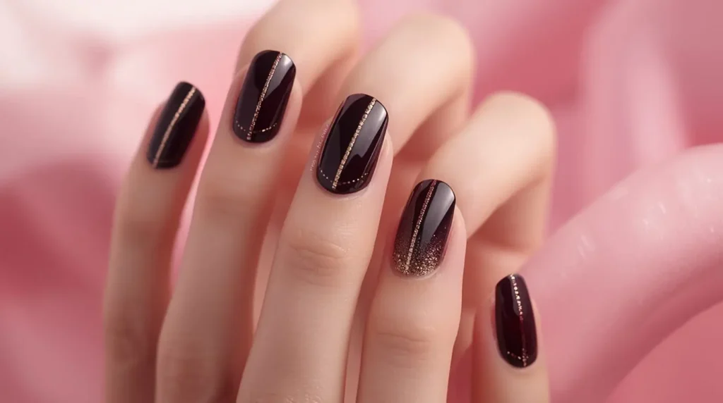 - Festive: Red or gold cat eye for Christmas, with one nail as a glitter accent.